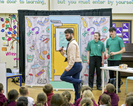 ' On Your Marks ' is an hour long, high impact educational presentation for Key Stage 2 pupils. It brings to life learning around physical and emotional wellbeing. The presentation comprises live theatre plus interactive discussion. This presentation provides young people in KS2 with tools to understand aspects of their own emotional health and strategies to become skilled at responding to situations in different ways.